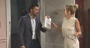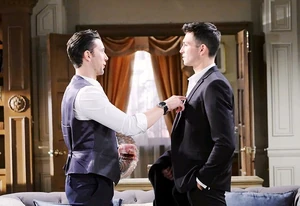 Chad goes to the Kiriakis mansion to confront Deimos, and sees that Gabi has broken into the safe. He sees the device in her hand and wants it. She refuses him.