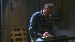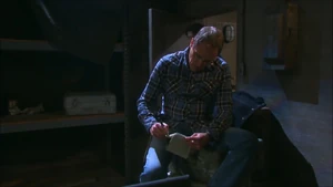 Orpheus noticed Joey had a black eye and bleeding lip and sort of apologized for Xander being too rough on him. Joey said he could take it, and Orpheus noted he was like his father. Joey was shivering, so Orpheus have Joey his jacket, saying he was tired of watching him shiver. Joey shrugged the jacket off and some photos fell out. Orpheus collected them and Joey asked if those were his kids. Orpheus confirmed they were, and said they hated him. Joey suggested they could forgive him because he also hated Steve for awhile. Orpheus said it was too late for forgiveness, and showed him a photo of his daughter and grandson, saying this is the closest he will ever get to him.