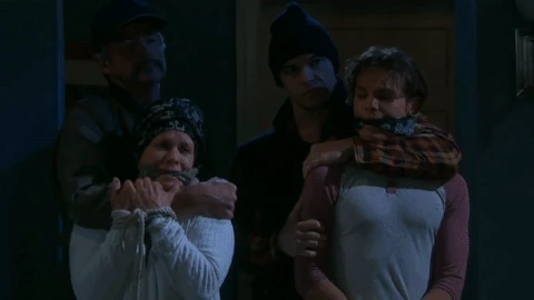 Orpheus, Clyde and Xander hold the Johnsons hostage