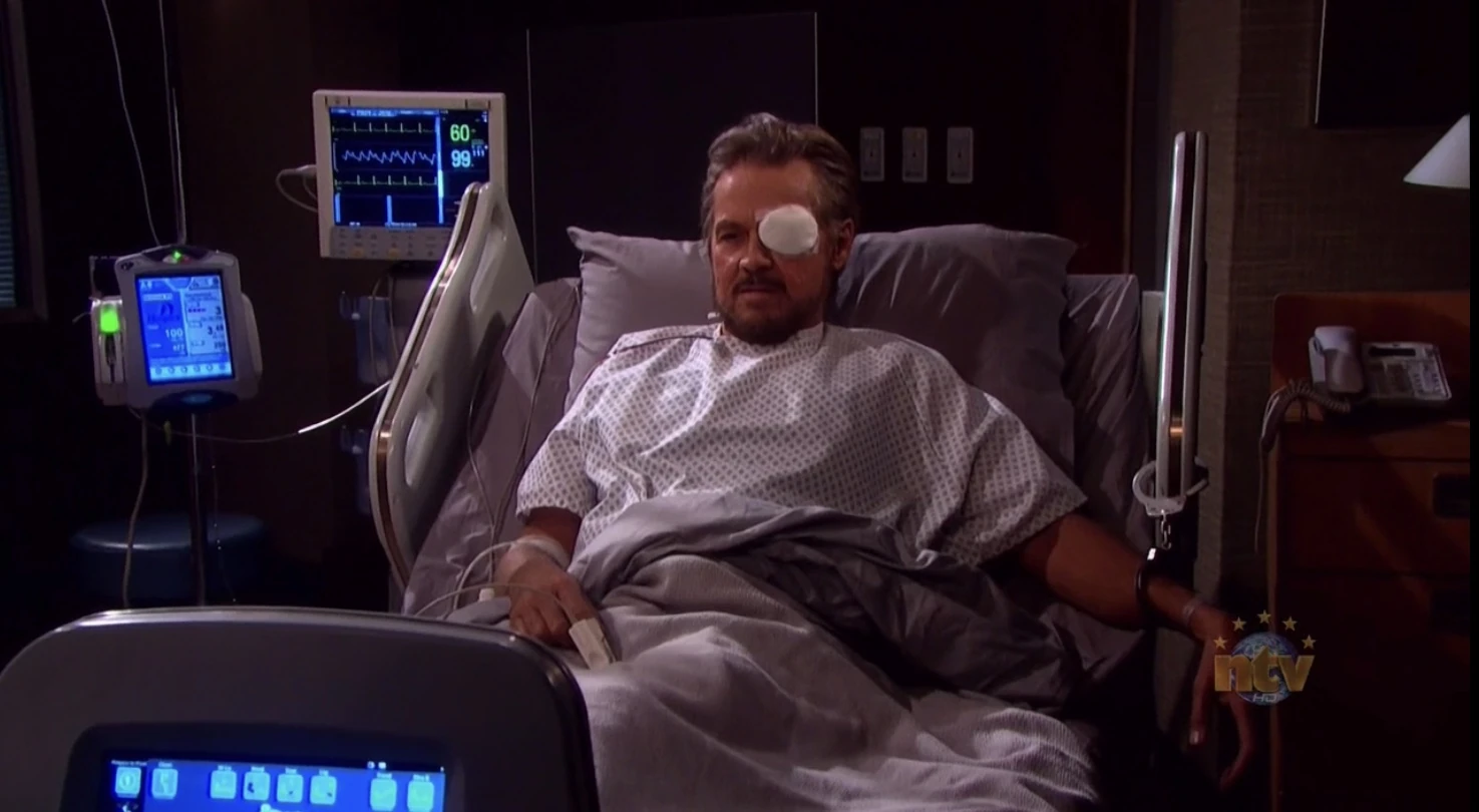 Alone in his room, Stefano thinks to himself that he hasn't lost yet, and that he still has more moves left to play. Kayla returns and goes to heck Stefano's eye. Stefano snaps at her to get away from him and says he won't let her or anyone else touch him in this hospital. He yells at Kayla to get out of his sight.