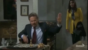 Gina asked about the plan again, and Stefano assured her that it would break up John and Marlena, so he could have his queen and she could have the leftovers. Stefano picked up a pawn from his chessboard and showed it to Gina, who grabbed it, saying she would gladly take John.