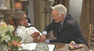 Stefano sat with Marlena, and wondered what he must do to make her his. Rolf suggested that Stefano remind her of the good times they had. Stefano asked Rolf to stand back, and as Marlena woke up, he told Marlena of how she cared for him after he was pushed off the balcony and paralyzed. Marlena asked who would do such a terrible thing? and Stefano said it didn't matter, but she cared for him and now he wanted to return the favor. Marlena asked for John, and Rolf advised Stefano to be patient and to keep reminding Marlena of what they shared. Marlena asked for some water, and as Rolf and Stefano got her water, he said he needs something more. Rolf gave Stefano a book that he once gave to Marlena, and she read to him from.