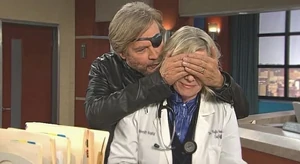 Stefano goes to Kayla's office where he poses as Steve and convinces her to patch him up while brushing off Kayla's feelings of pain and abandonment. He explains that Stefano kidnapped John and shot him when Kayla says she thought he was John. After getting patched up, "Steve" thanks Kayla and says he needs another favor from her.