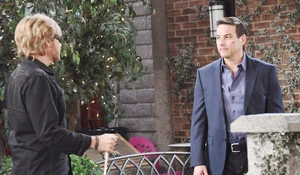 Stefano informs Gina that Kristen DiMera is about to become a nun and plans to give her shares of DiMera to the church. Gina says they can’t let that happen, and Stefano agrees, saying they will stop her. He gets in touch with Chad DiMera and tells him what Kristen is planning to do. Abigail Deveraux calls Gina and says she wants to discuss Eve Donovan’s case with “Gina”. Gina wonders why since Eve has been in prison for months. Stefano tells Gina she has to go to make sure she is in control, and laments that it is a lesson he has tried to impart on Chad.